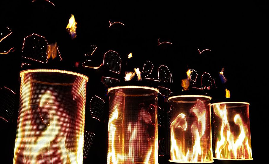 These LED performers create a stunning show that features mesmerising soundtracks, coordinated lighting effects, and rhythmic drumming