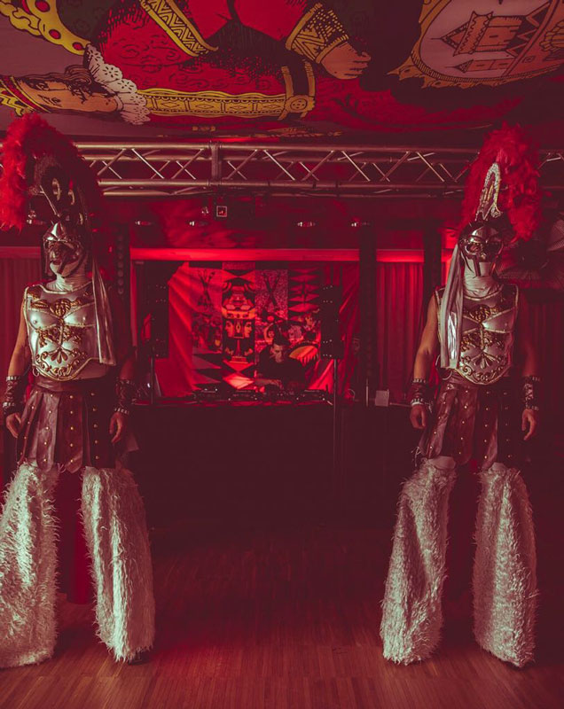 Also available for hire with other ground characters, our gladiators on stilts stand out from the crowd and immediately catch the attention of everyone in the room. Wearing spectacular LED armours and galeas (Roman soldier’s helmets), these working class heroes will bring an authentic flavour of ancient Rome to your celebration.