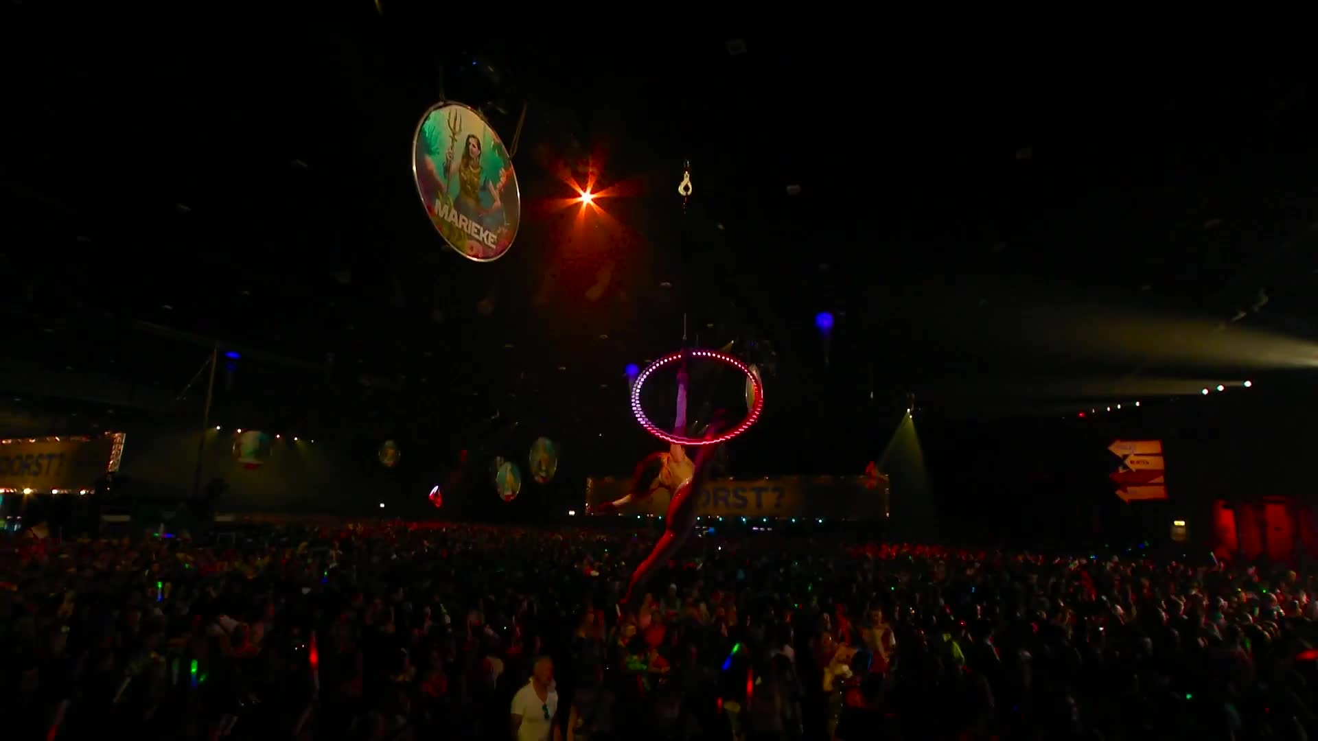 Our skilled aerial dancer seamlessly blends modern lighting technology with the elegance and dynamics of aerial acrobatics