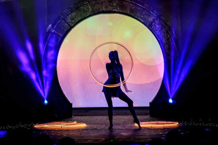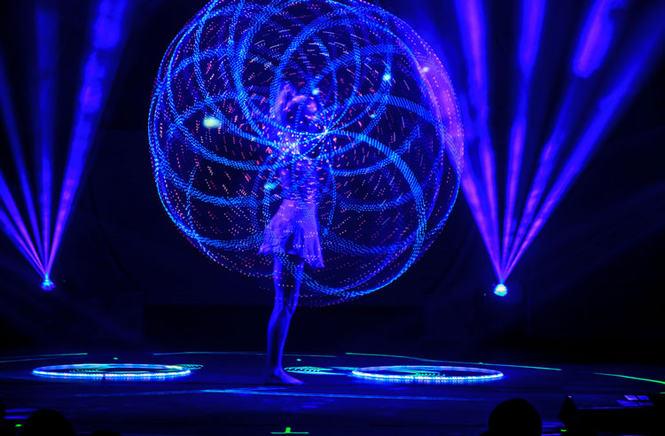 Our highly trained acrobat has transformed the loveable childhood activity of hula hooping into a dynamic awe-inspiring performance that combines LED hula hoops and exciting routines. An LED hula hoop dancer who demonstrates phenomenal amounts of flexibility, balance, strength, coordination and grace in each and every performance is the ultimate hula hoop performer.