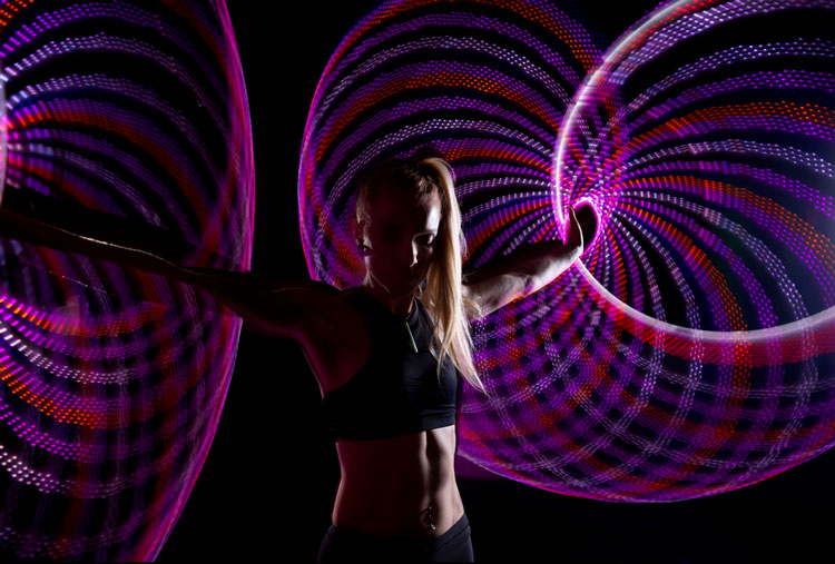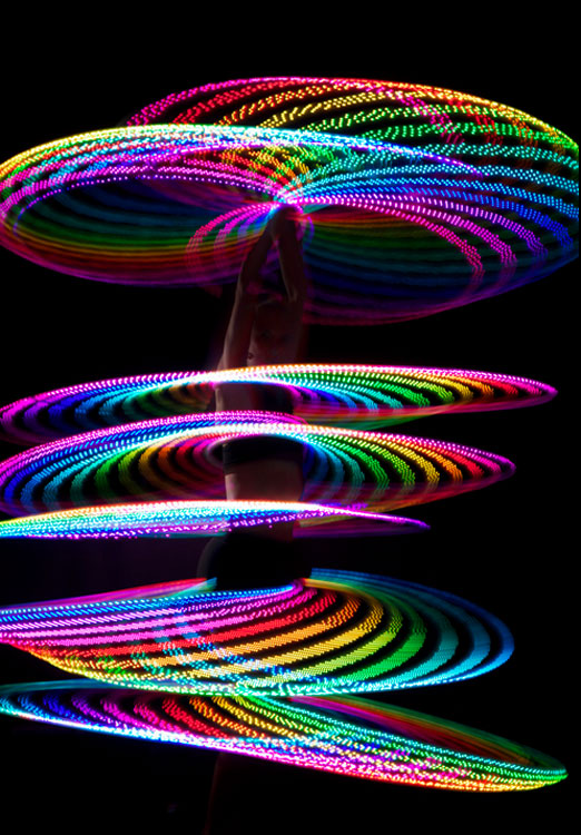 In addition to her colour changing hoops our hula hoop dancer can accommodate specific colours, logos and graphics to be used for corporate events, brand launches and product launches, or alternatively to match your colour scheme. A visually stunning display of talent and light that is a guaranteed hit with audiences of all ages will WOW your guests and leave them wanting more as our phenomenally talented performer creates a rainbow light spectacle right before your eyes.