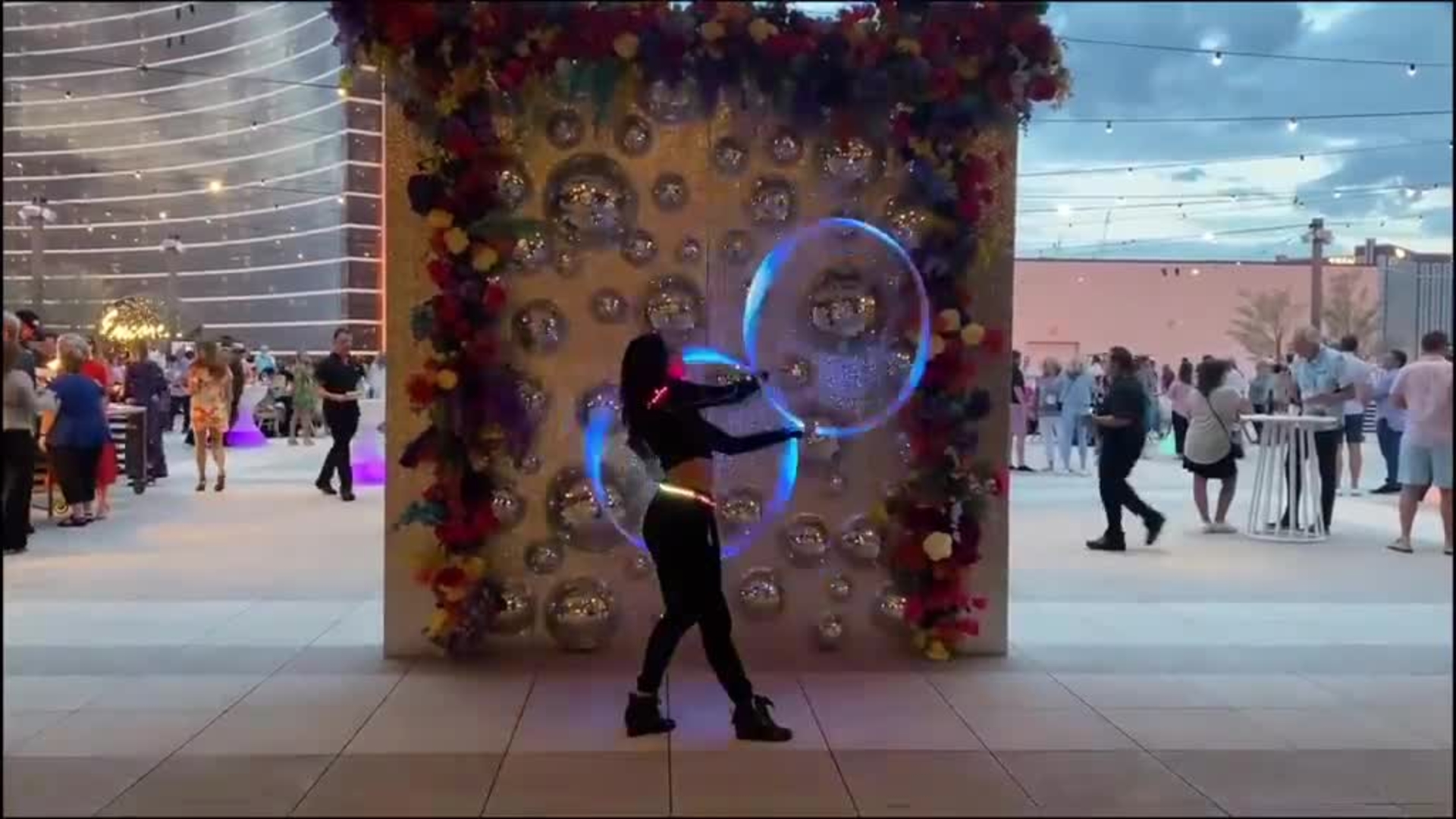 It is the ideal act for brand activations as the hoops can be customised with themed colours, synchronised to music and even show small logos