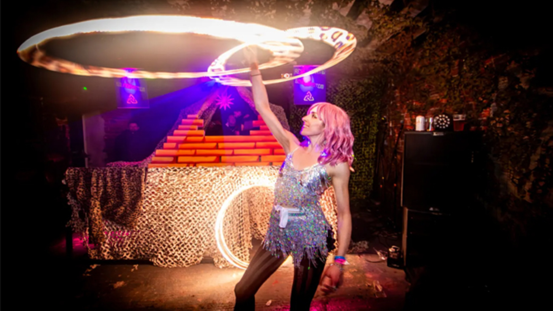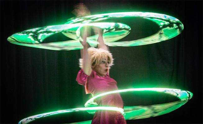 Able to perform with UV or LED hoops and colourful costumes, this circus performer is a delight to watch