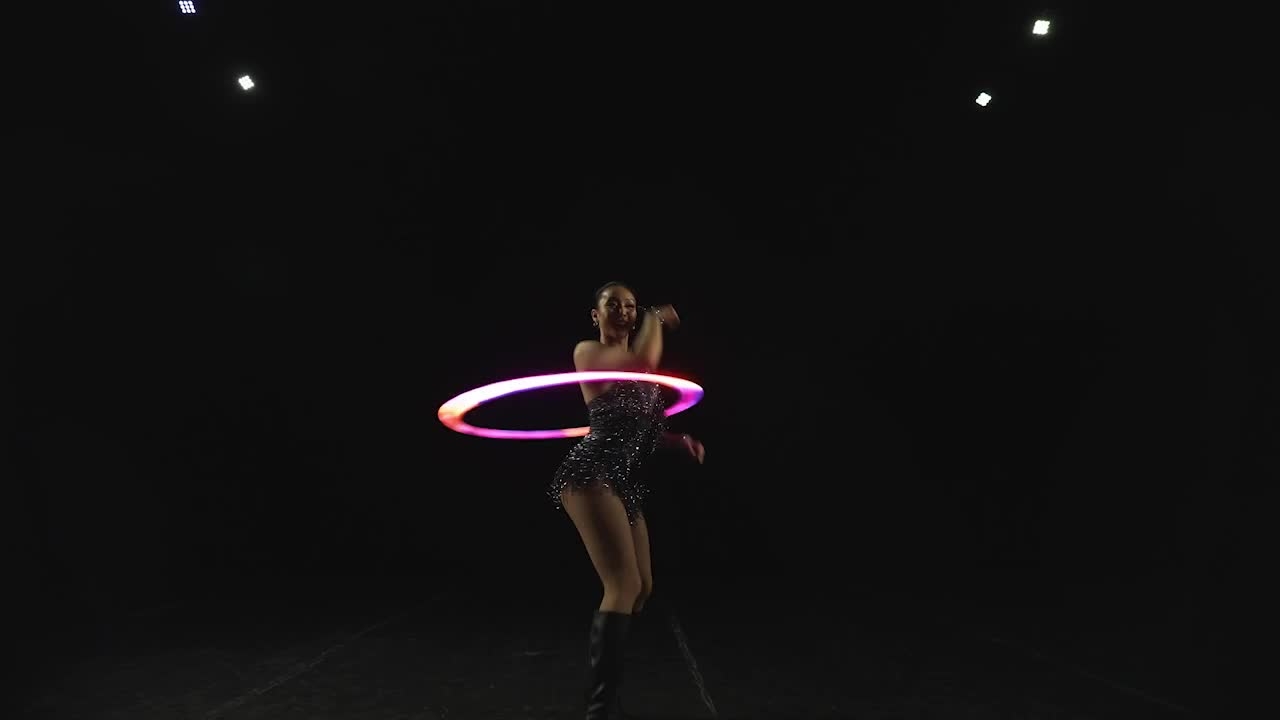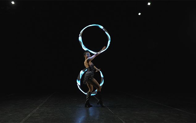 Mastering hoop and ballet at a young age, this LED hula hooper built a strong foundation for a versatile circus and acrobatic career
