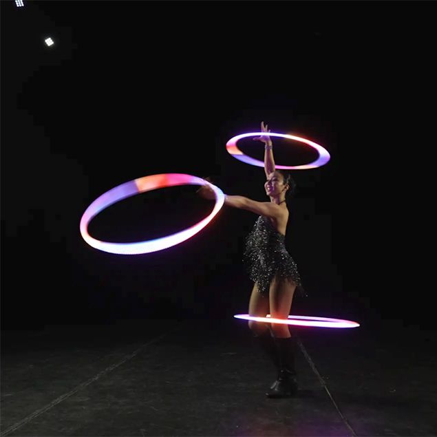 This spectacular hoop artist dazzles audiences, blending stunning lighting effects with mesmerizing LED hoop performances for an unforgettable show