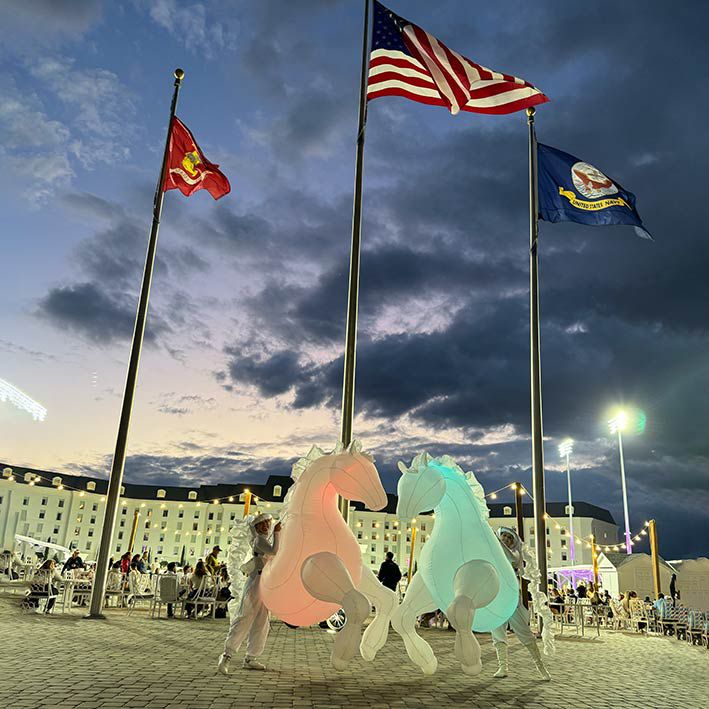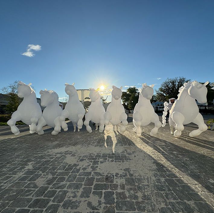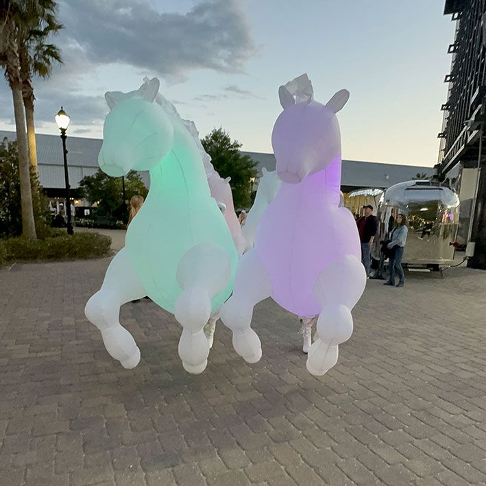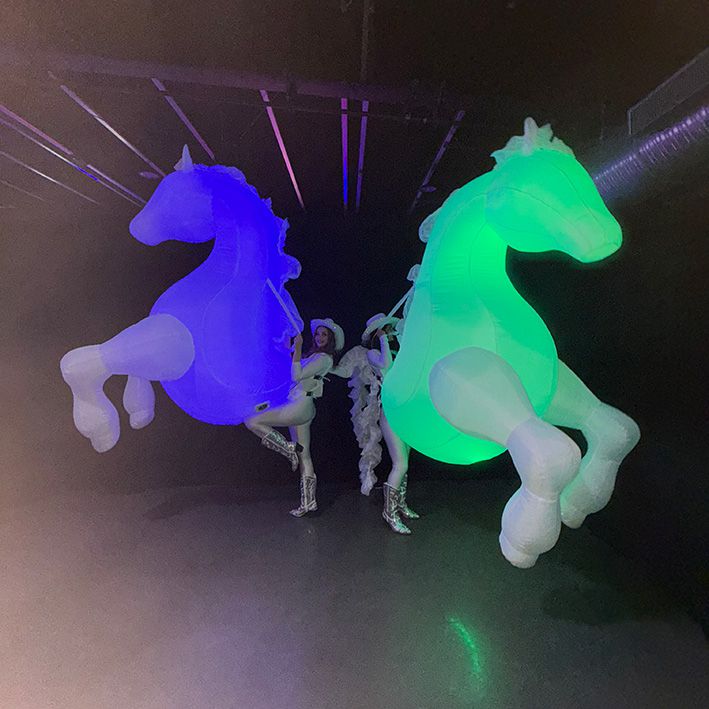 Offering an array of colours, horsey poses, and animalistic dance moves, these giant horses guarantee to be a lovable talking point among guests