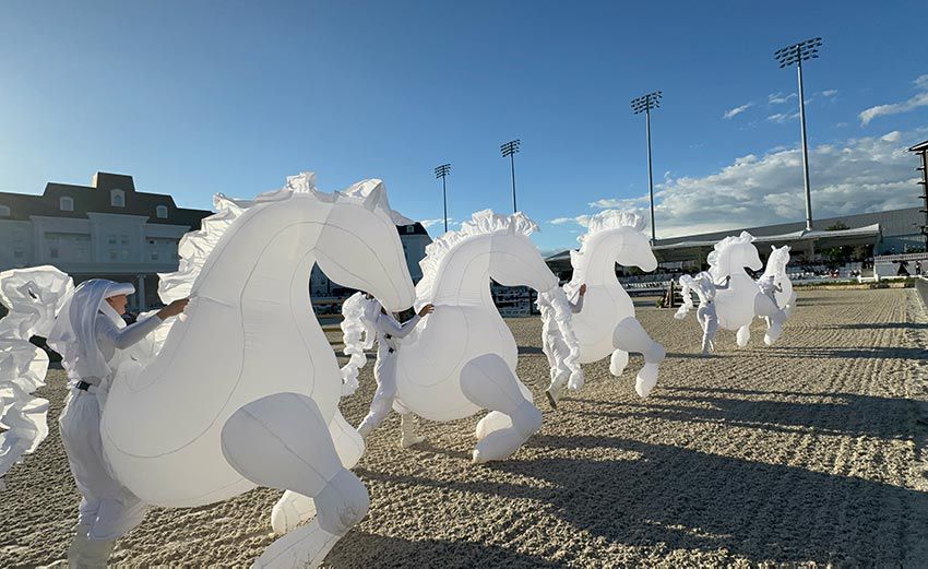 Huge inflatable horse puppets offer a fantastic photo opportunity for all equestrian-themed events
