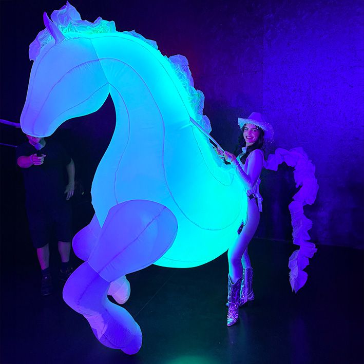 Light up your equestrian-themed event with our LED inflatable horse puppets.