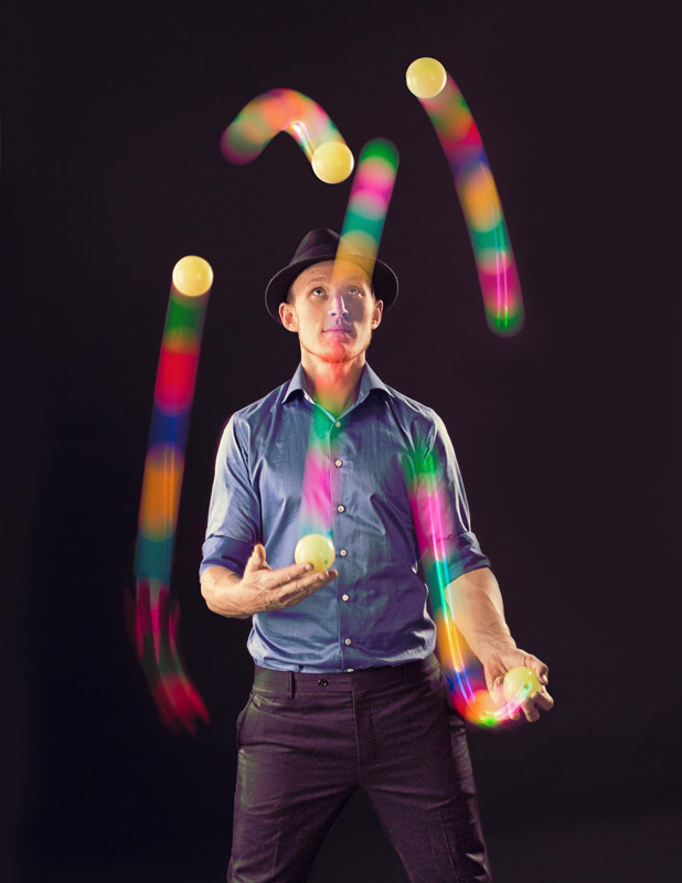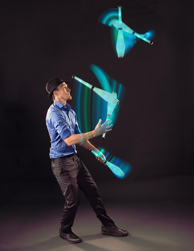 Our LED juggler has programmed his clubs and balls to change colours to keep each performance a fresh take on an old circus act that's ready to take your event by storm. The ideal engaging entertainment option for wedding receptions, corporate events, private parties, festivals, circus themed affairs, and so much more. Our LED and glow act won't disappoint and will leave a lasting impression on your event.