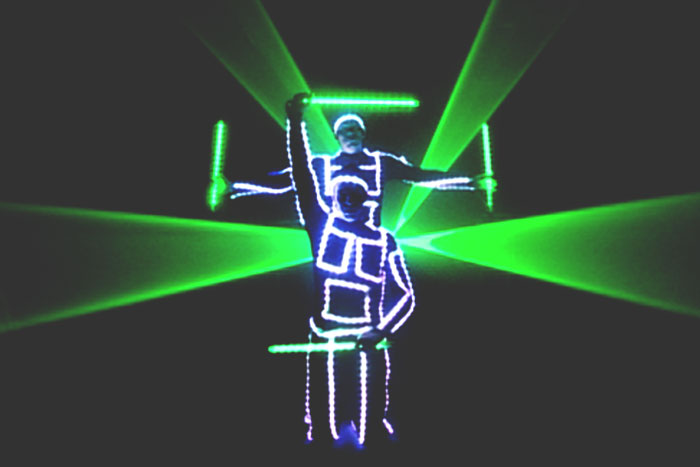All the best bits from our basic show plus our unique pixel light suits. Each LED in these suits is programmed to the millisecond to produce a simply staggering choreographed performance.