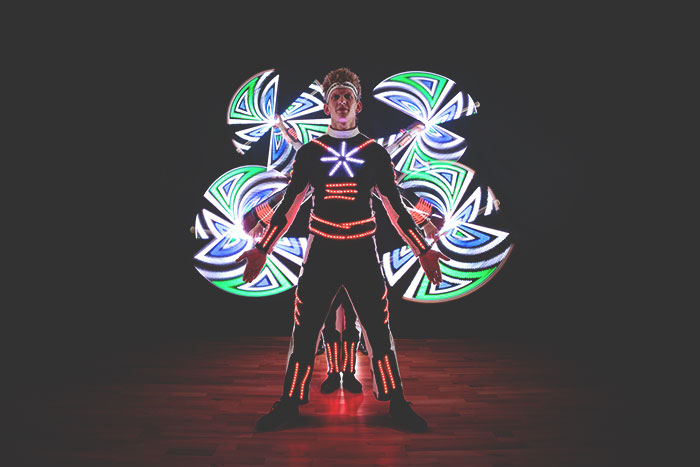 Being at the cutting edge of LED and Laser technology means we have always got something your guests won’t have seen before which will blow their minds! Above all we take pride in every performance, big or small, and only produce shows when we’re confident we can excel.