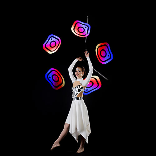 Poi and graphics staffs are visually striking and are perfect for incorporating logos and slogans into the performance
