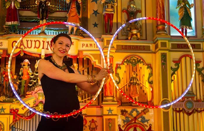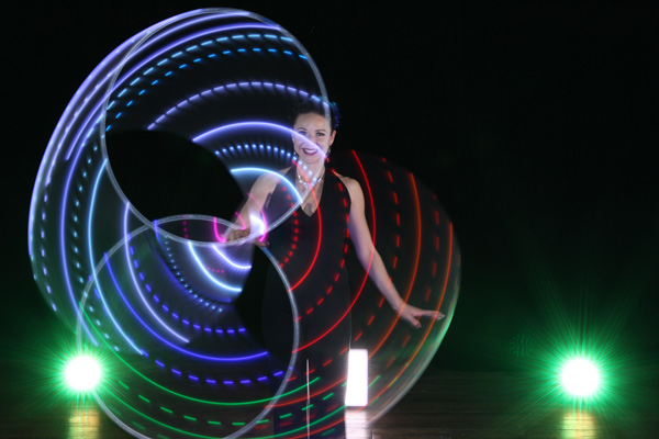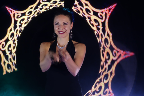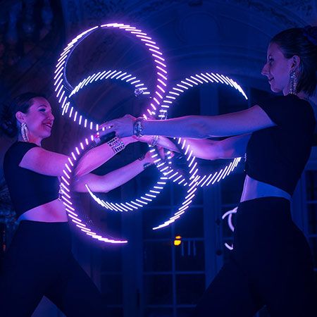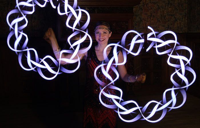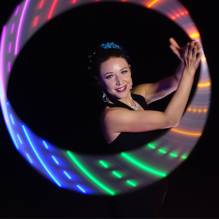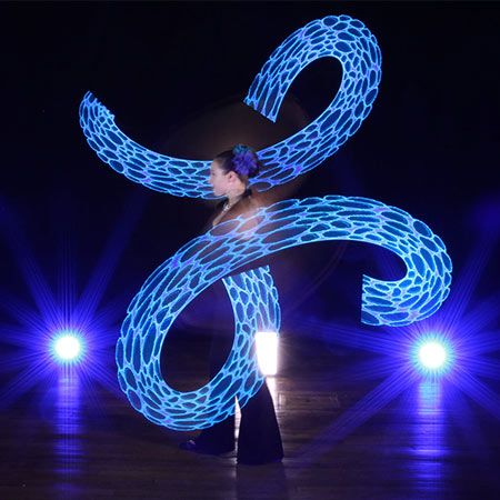 Also able to use hula hoops, staffs, flags and fans, our circus performer can incorporate different props depending on the show that you require. Creating amazing visual effects with her creative costume choices, she can wear luminous body paint, oriental costumes or glow in the dark clothing. Happy to create shows especially for your event, let your imagination run wild and our LED dancer will do the rest.