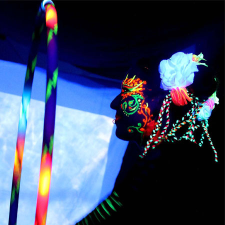 Having performed at amazing events like London Burlesque Festival, Collective Dream Catch and Illusion Sound, this glow artist makes the perfect addition to festivals, corporate functions, private parties and more. Incorporating dramatic soundtracks and audience interaction into her spectacular shows, our bubbly circus artist is certain to create an electric atmosphere at your special occasion. Whatever the event, expect fun, excitement and theatrics!