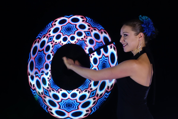 - LED Poi: Using rainbow coloured poi, our artist creates beautiful patterns and lights