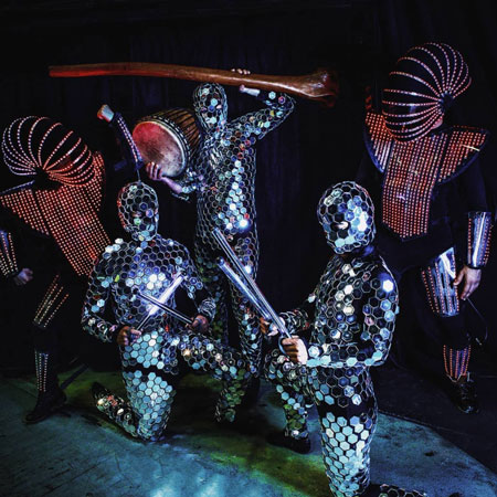 Roaming about your event, watch as these mirrored characters become their own light source as they bounce and reflect lights from their LED props off of their shimmering costumes! Transforming their performance space into a giant disco ball arena, these LED Mirror Men sparkle all night long.