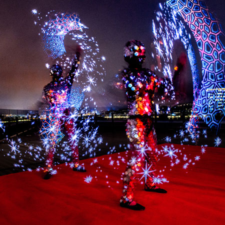 Our light show of two to eight artists can be tailored and adapted to the size of the event as well as the overall theme.The show can also include LED rock rings, dance and acrobatics with LED and laser costumes, scene effects and pyrotechnics that can also be adapted for indoor use to create a spectacular showcase.