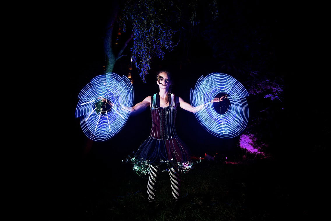 From LED hula hoops and poi to light up juggling balls, staff, fans, whips, wands and fibre optic dresses; the LED performers execute freestyle performances or choreographed routines to great effect!