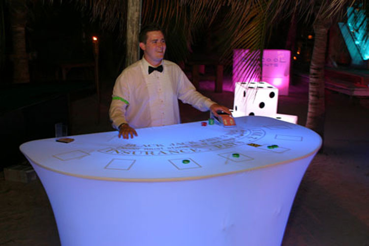 Our LED specialists can design and create a unique glowing party atmosphere with UV drapes, props, décor, centre pieces, light up furniture and casino tables. Not only that but we can also supply LED games such as ping pong, cornhole, UV foosball and more.