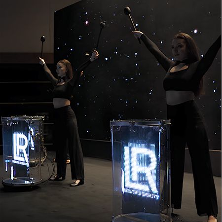 Ideal for conferences and brand reveals, logos can appear in each drum or across the whole set-up and are perfect as a show opener for awards nights