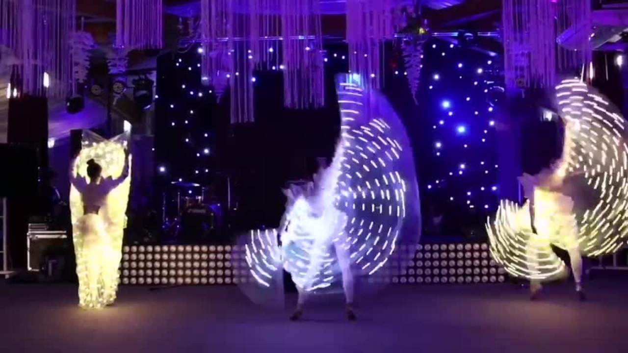 One up to three LED Poi Female Dancers can carry out a LED poi show at your upcoming celebration and create bespoke choreographies and dance to requested music to fit your event’s requirements. This stunning colourful performance doesn’t necessarily need to be executed under completely dark conditions, which makes it suitable for a wide range of events and venues, both indoors and outdoors.