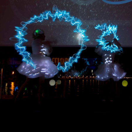 Offering 10 minute performances featuring up to 5 LED acts with two poi illumination artists and 4 LED hoop jugglers, each show will ensure that your LED branding is a focal point.