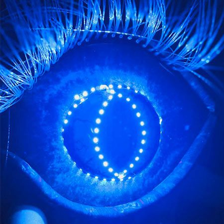 These beady eyes seem to follow you around the venue, thanks to their mirrored surface and vibrant LED lights