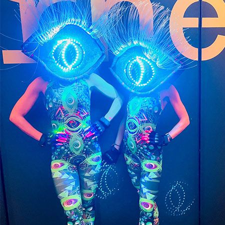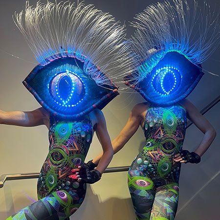 Dressed in psychedelic jumpsuits, our roaming eye hostesses are the perfect addition to disco, rave and 90s-inspired events or alien-themed parties