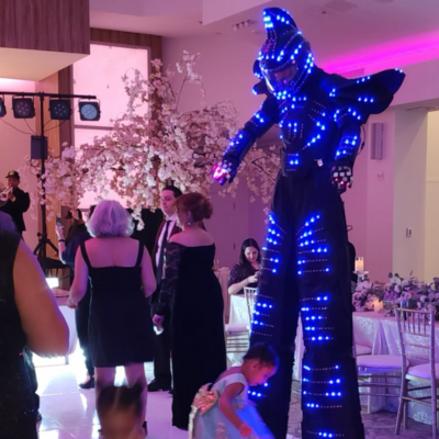 These towering 10ft LED performers create a dazzling spectacle with color-changing lights that instantly energize any event