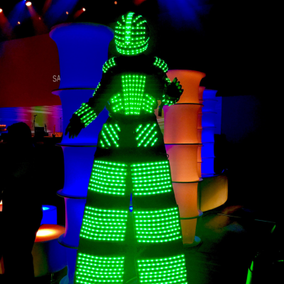 These LED Robots are the perfect roaming act for nightclubs, VIP galas, product launches, festivals, and immersive corporate occasions