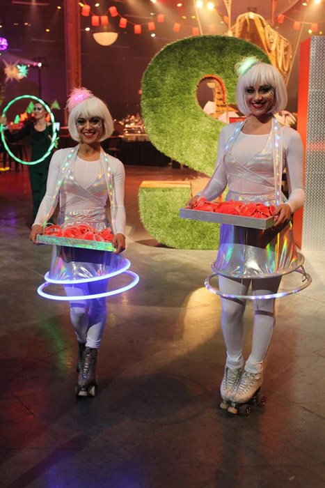 If you would like to book the LED Roller Skate Tray Girls for events all across the United States, please contact our team at Scarlett Entertainment.