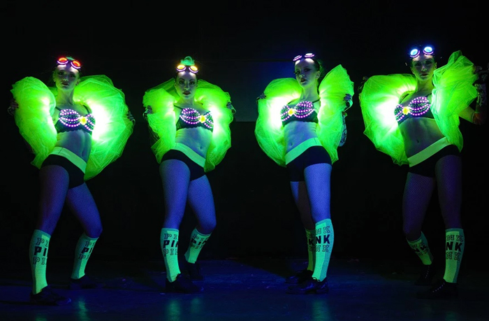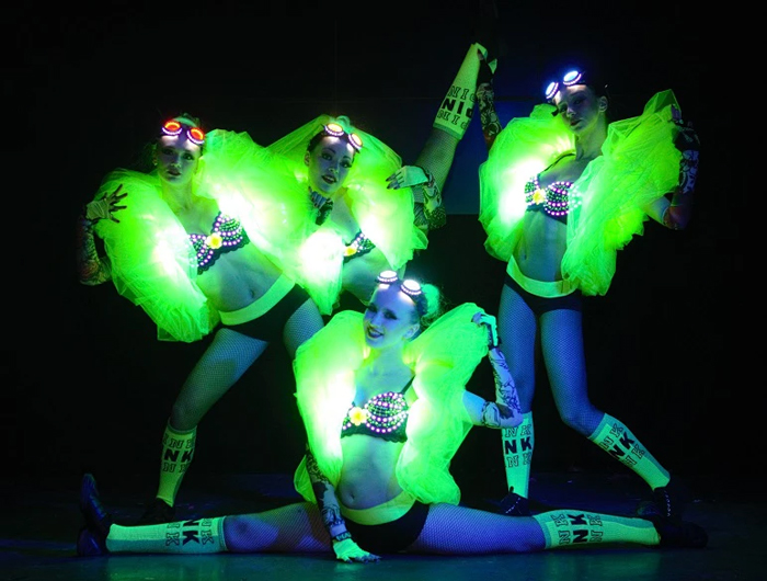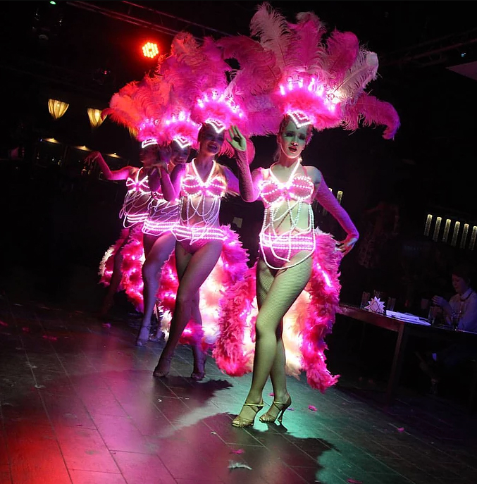 The showgirls can be book with glamorous light up costumes too.