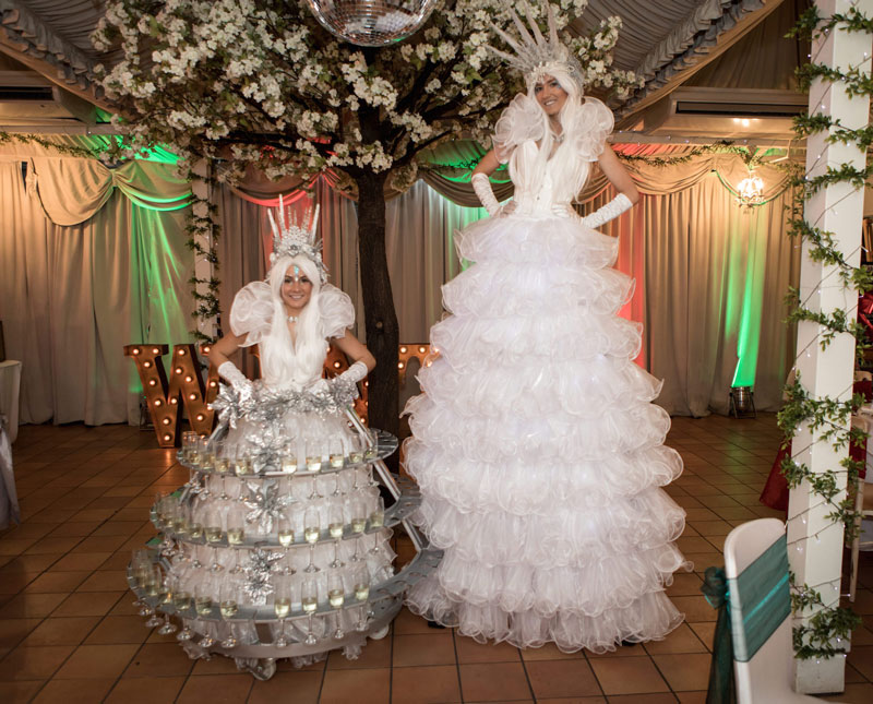 Available as stilt walkers or champagne dresses, this mix and mingle entertainment will keep guests topped up with champagne or a drink of your choice as they enjoy themselves drinking, mingling and chatting.
