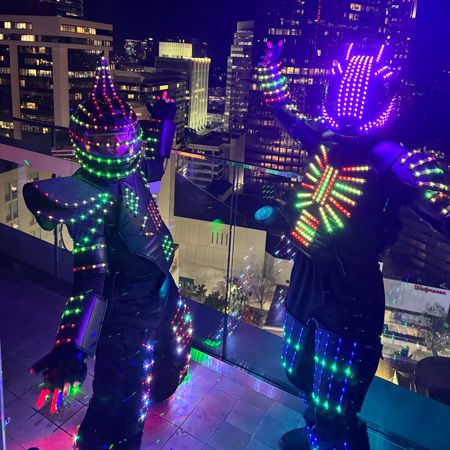 This LED Party Robot, dressed in a full-body LED light suit, delivers the ultimate party vibe, keeping energy levels high all night long!