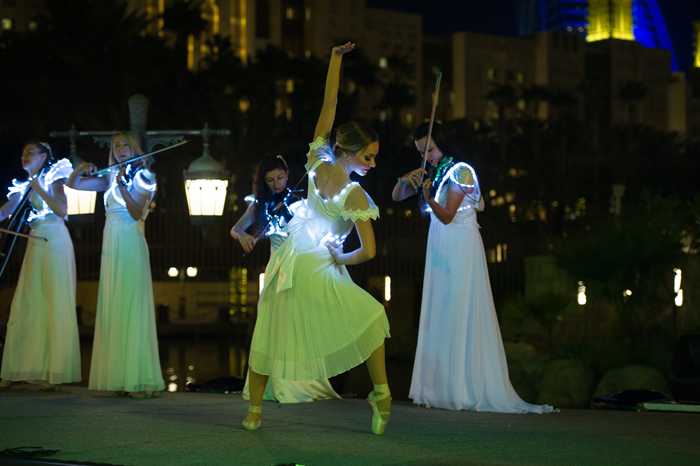 The performance is based primarily around the delightful LED string quartet. The four talented female musicians use electric string instruments and perform along to high-quality backing tracks. The LED string quartet sets the tone with a repertoire that spans from classical works of Mozart and Beethoven and slowly up the tempo by progressing towards modern songs such as Despacito and Camila Cabello's Havana.