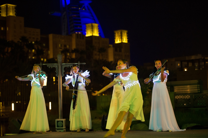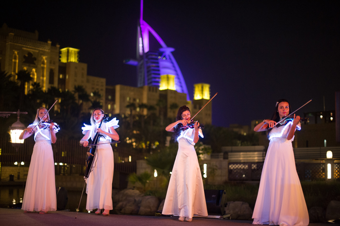 Created by our in house production team, the superb LED String Quartet and Dancer is a means to providing guests with an alternative live music and performance experience. Both the string quartet and ballerina come dressed in beautifully hand-crafted Grecian Goddess style white gowns with in-built LED lights. These make the act look phenomenal in situations with low lighting or at night.