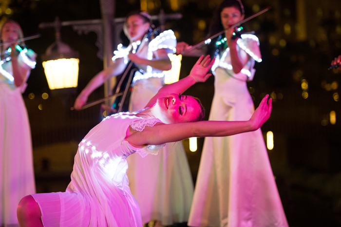 Contact us directly at Scarlett Entertainment if you are interested in booking the LED String Quartet and Dancer for your next event.
