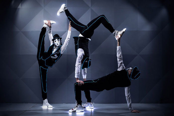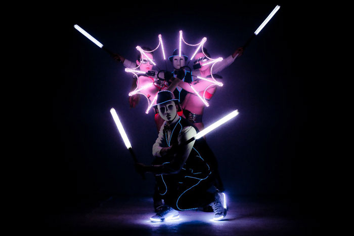 Our Moscow LED Act features multi-disciplined performers that pool together modern dance and circus tricks. They are able to provide highly visual showcases with gymnastics and acrobatics all the way to mesmerising LED shows with their brilliant props.