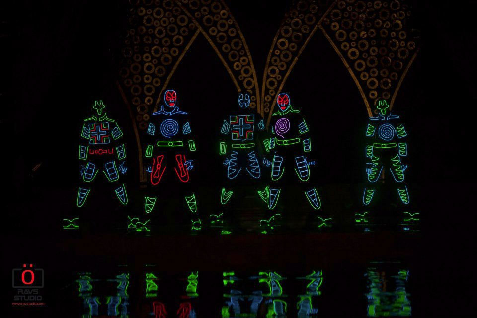 Established in 2001, this collective of male and female dancers are one of the most popular LED tron acts in India. Each dancer has individual talents and collectively they bring together trained elements of Tron Act, hip hop, Michael Jackson, popping, locking, waving, tutting, breaking, bollywood, contemporary and salsa dance styles as tools to create their show.
