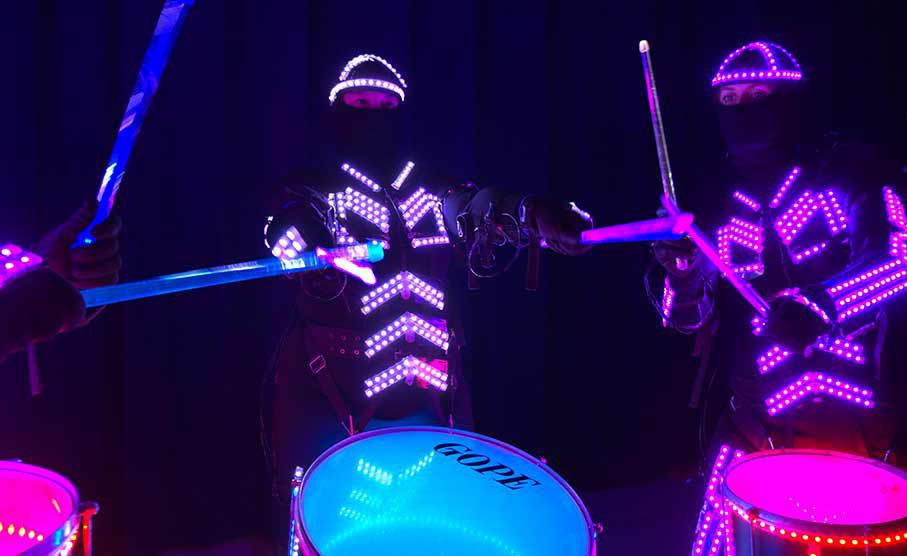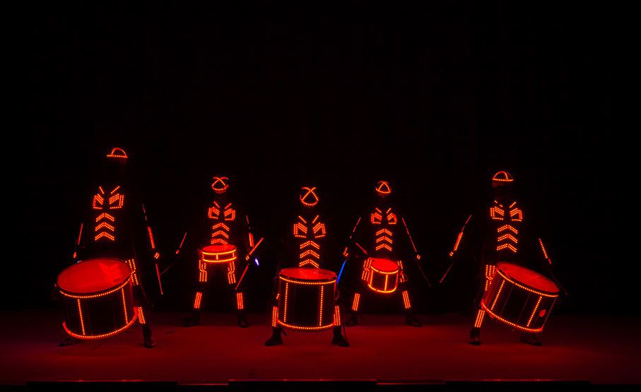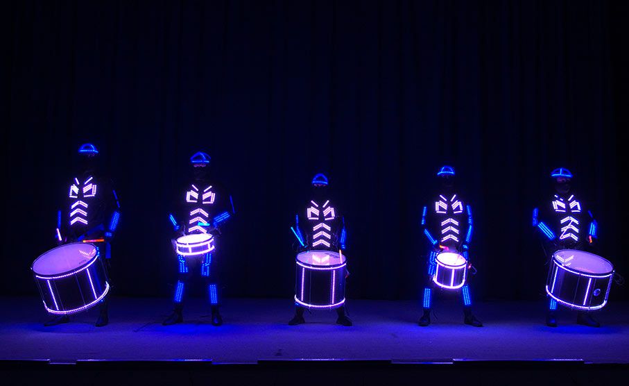 Our expert Tron drummers can adapt the scale of their show to complement different event settings, from a large auditorium to smaller-scale venues