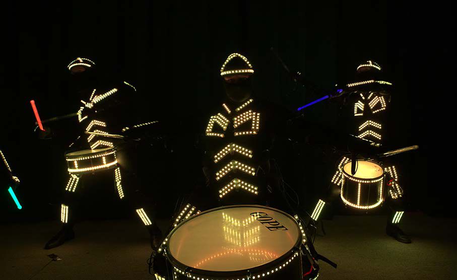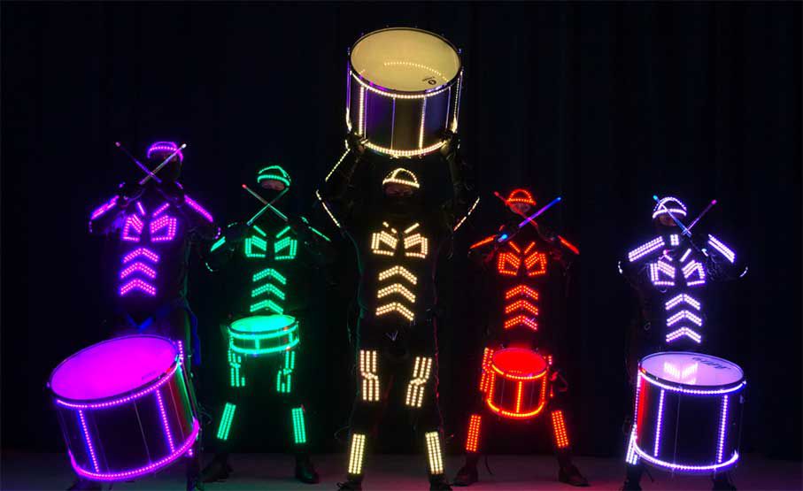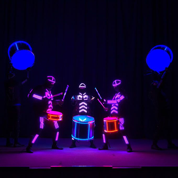 Our LED Tron Drummers expertly fuse live percussive beats with an impressive LED light show for a captivating high-tech show
