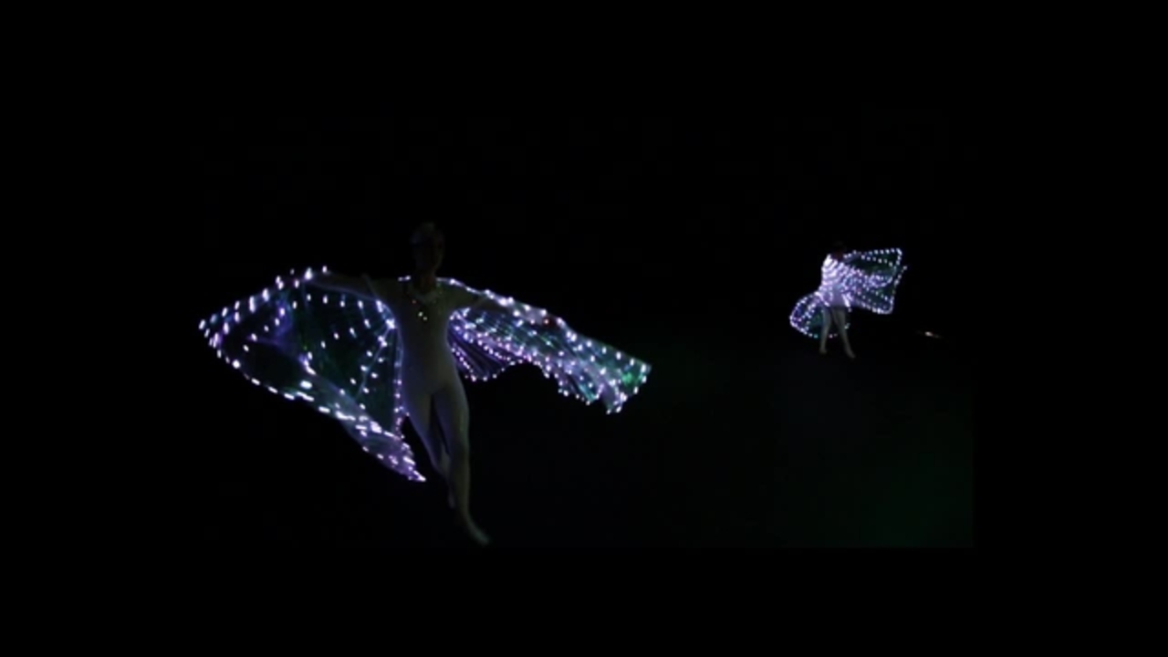 The dancers combine beautiful images of moving light with stunning choreography whilst on ballet pointe. Watch as the large, spiralling wings make mesmerising patterns, all in unison. Creating geometric illusions with their giant wing spans, our ballet dancers for events flutter and fly across the stage.