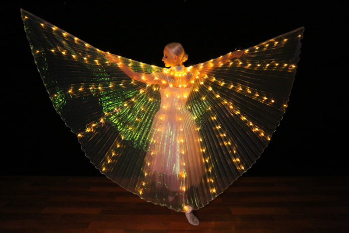 This beautiful and graceful LED wings show will stun your guests with a magical illuminated dance experience