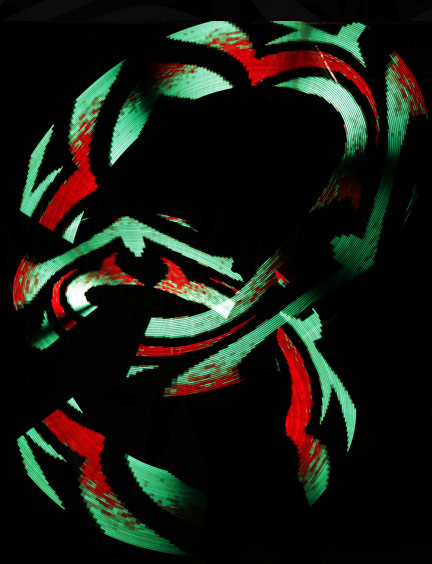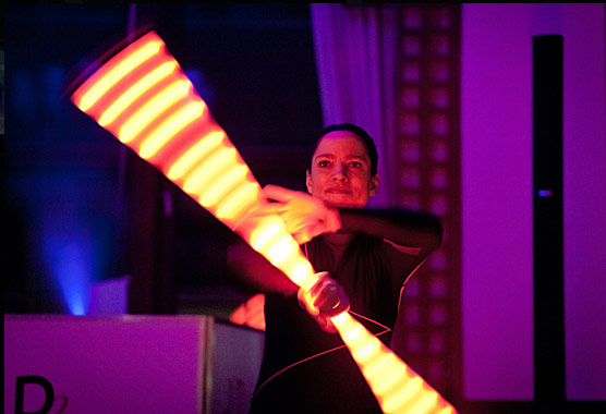The colour programming of the lighting props is tuned to the music, so a clever artistry of light and dance creates beautiful compositions. The absolute highlight is the artist with her new LED Poi at the end of the show.