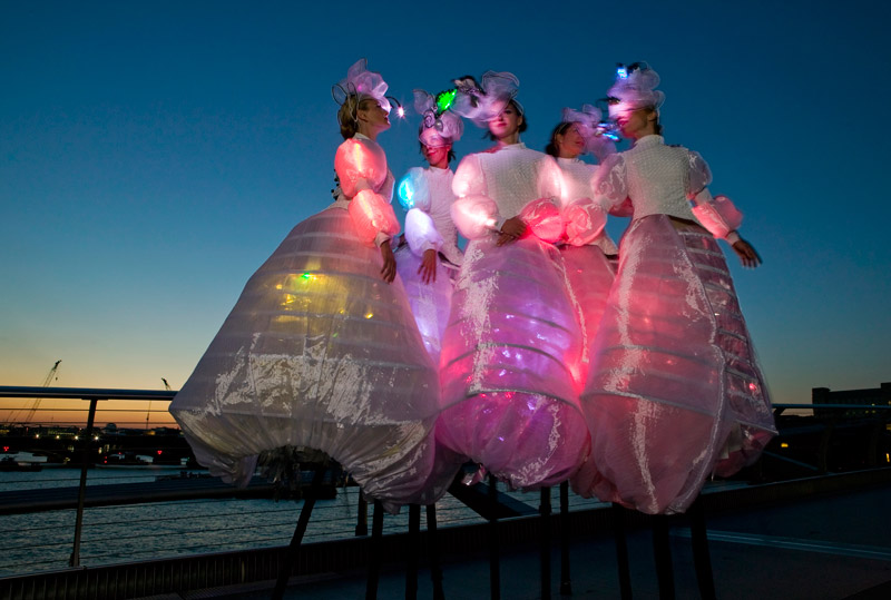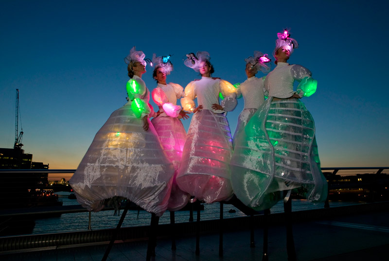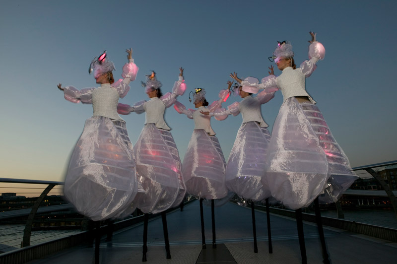 This London based Stilt Walking group specialise in creating contemporary spectacle using modern circus style. They have collaborated with The Royal Opera House, The Gandinis, Shunt, Improbable, Aerotech and have performed at The Royal Courts of Justice, The Royal Albert Hall, the Science and Natural History museums, the V&A and all over the world.