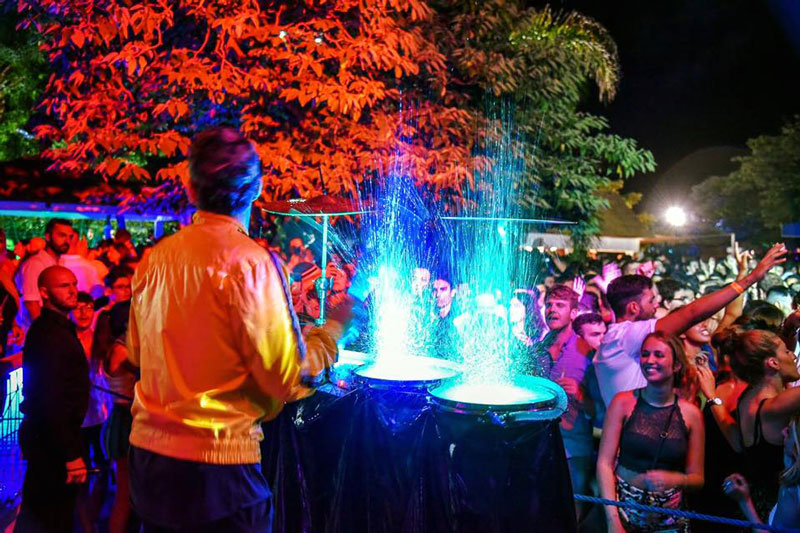 A visually captivating performance, this water drum show is a spectacle well worth seeing! By combining his passion for percussion with LED lights and water, this unique musician adds a spectacular visual element to any occasion.