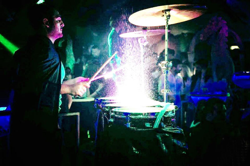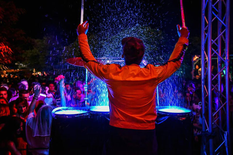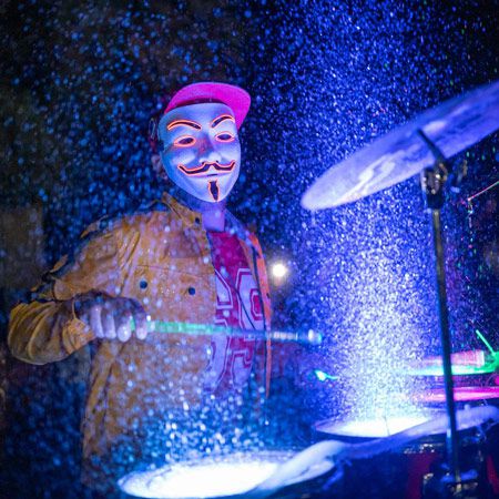 Happy to share the stage with other performers, our light water drummer can adapt his high-energy splash drums show to different spaces. Offering the ultimate live stage entertainment experience, our light water drummer never fails to impress with his vibrant performances and the unstoppable rhythm of his beating drums!