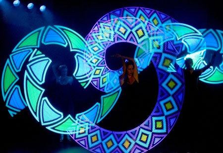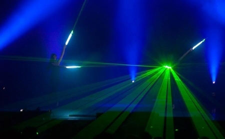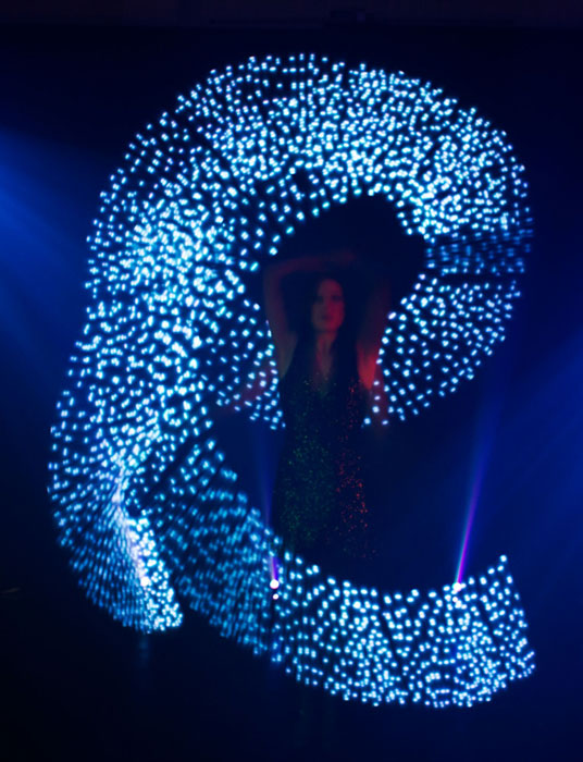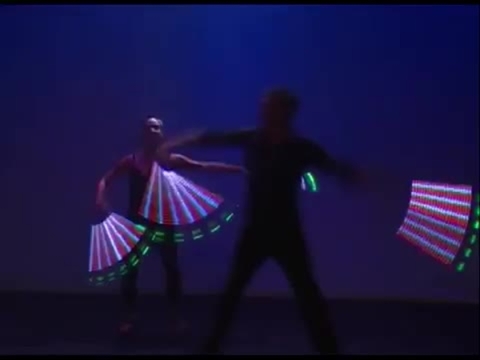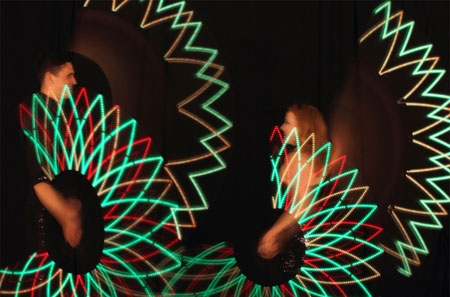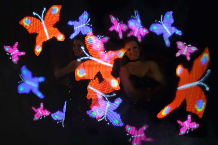 A distinctive combination of laser manipulation, tightly choreographed lyrical dance and Pixel-Poi graphics which builds to a beautiful crescendo of colour. Slick movement and clever programming produce dramatic visual illusions as light motifs appear, disappear and change to stunning effect. Kaleidoscope can feature from 2 to 16 artists.