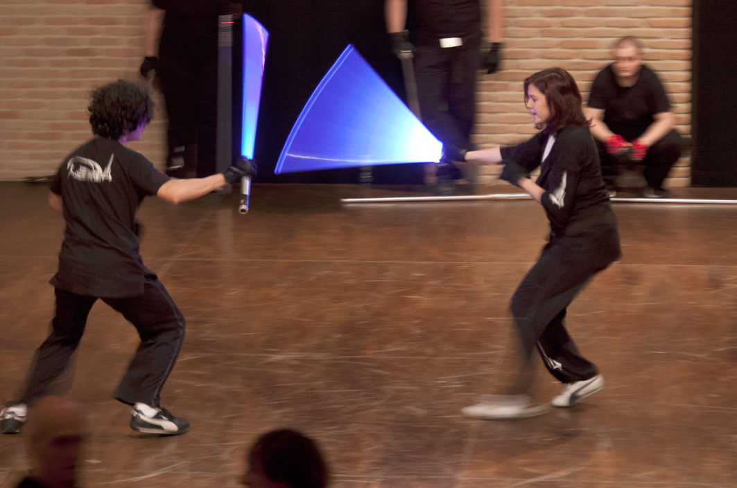 They present a brief but intense experience in LightSaber Combat, with a 20 minutes class of basic Form I apprenticeship and a final 1-vs-1 tournament among participants.