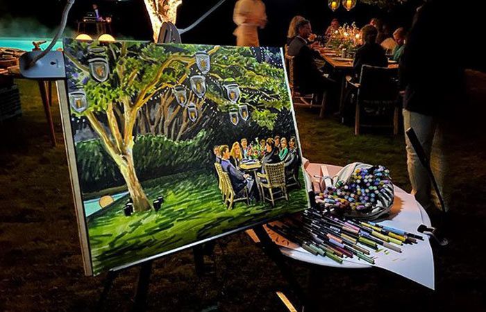 Our talented event artist can work in a variety of mediums including acrylic paint, watercolour's and brush pens, depending on your preference